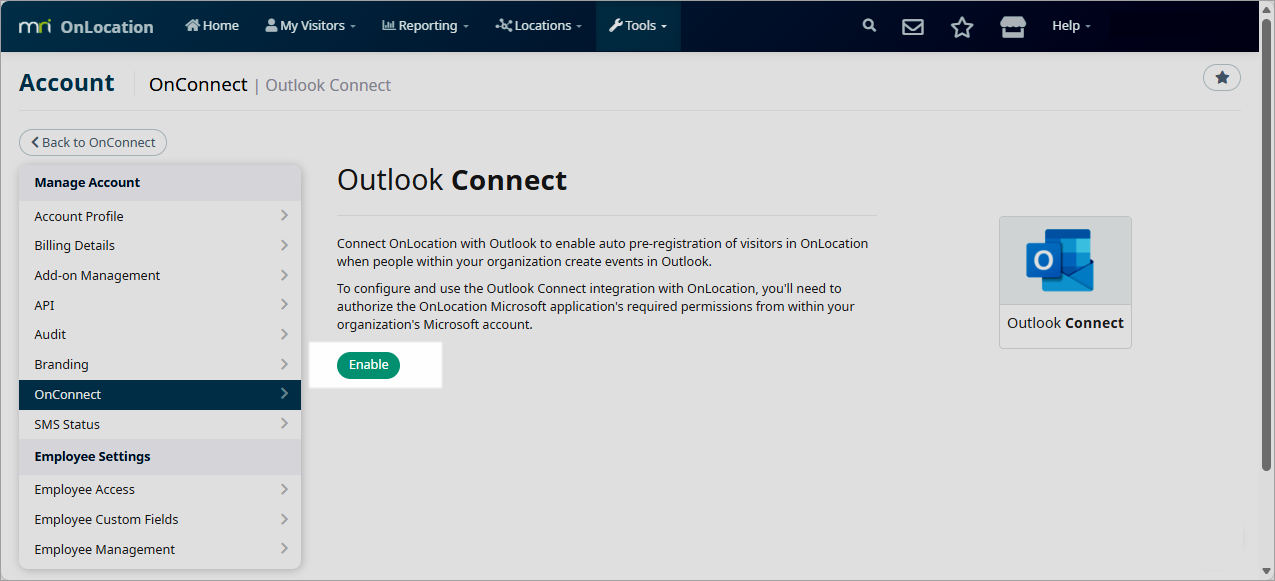 Learn how to enable the Outlook Connect integration. You must have the Account Owner or Administrator user role to access these settings.