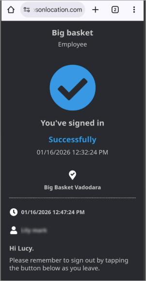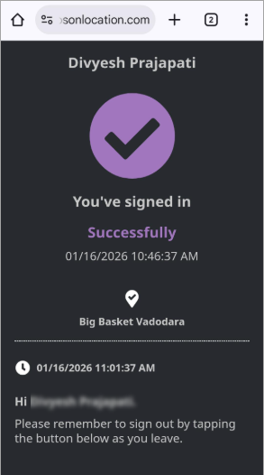 Used for internal employees signing in to confirm their presence on‑site during work hours.
