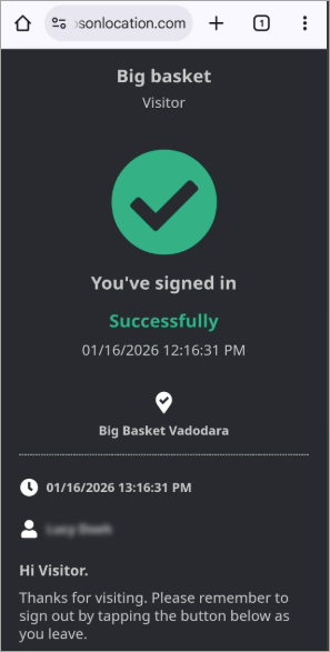 The mobile sign‑in screen has been enhanced to display distinct colours for each person type. This visual update makes it easier to quickly identify how someone has signed in, especially in environments with multiple locations and high daily sign‑in volumes.